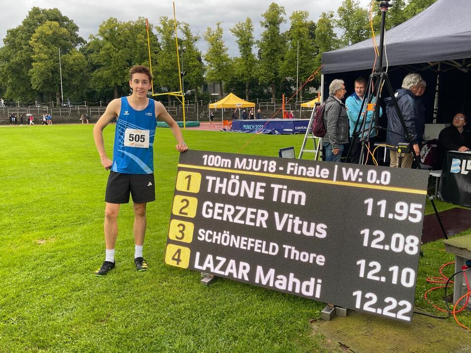 Korbinian Lang (U20) musste sich in der Männerklasse beweisen und startete mit einer starken Vorstellung über 100 Meter. Mit einer Saisonbestzeit von 12,05 Sekunden verpasste er zwar knapp den Finaleinzug, konnte jedoch seine Leistung zum Saisonabschluss nochmal steigern. Auch über 200 Meter zeigte er seine gute Form und stellte mit 24,87 Sekunden eine weitere Saisonbestzeit auf, die ihm Platz 10 einbrachte.
