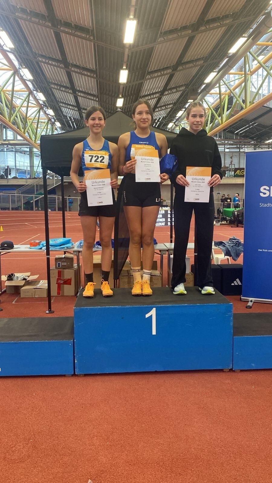 München 31. Januar & 2.Februar 2026: Am Wochenende fanden in München die Bayerischen Hallen Meisterschaften statt. Die Meisterschaften bei den U16 werden für die Altersklasse W15 ausgetragen. W14 können teilnehmen sofern sie sich für die W15 qualifizieren konnten. Lisa-Marie Stanglmair ist W15 und Hannah Wittmann als W14 konnte sich gleich in 3 Disziplinen bei den W15 qualifizieren.