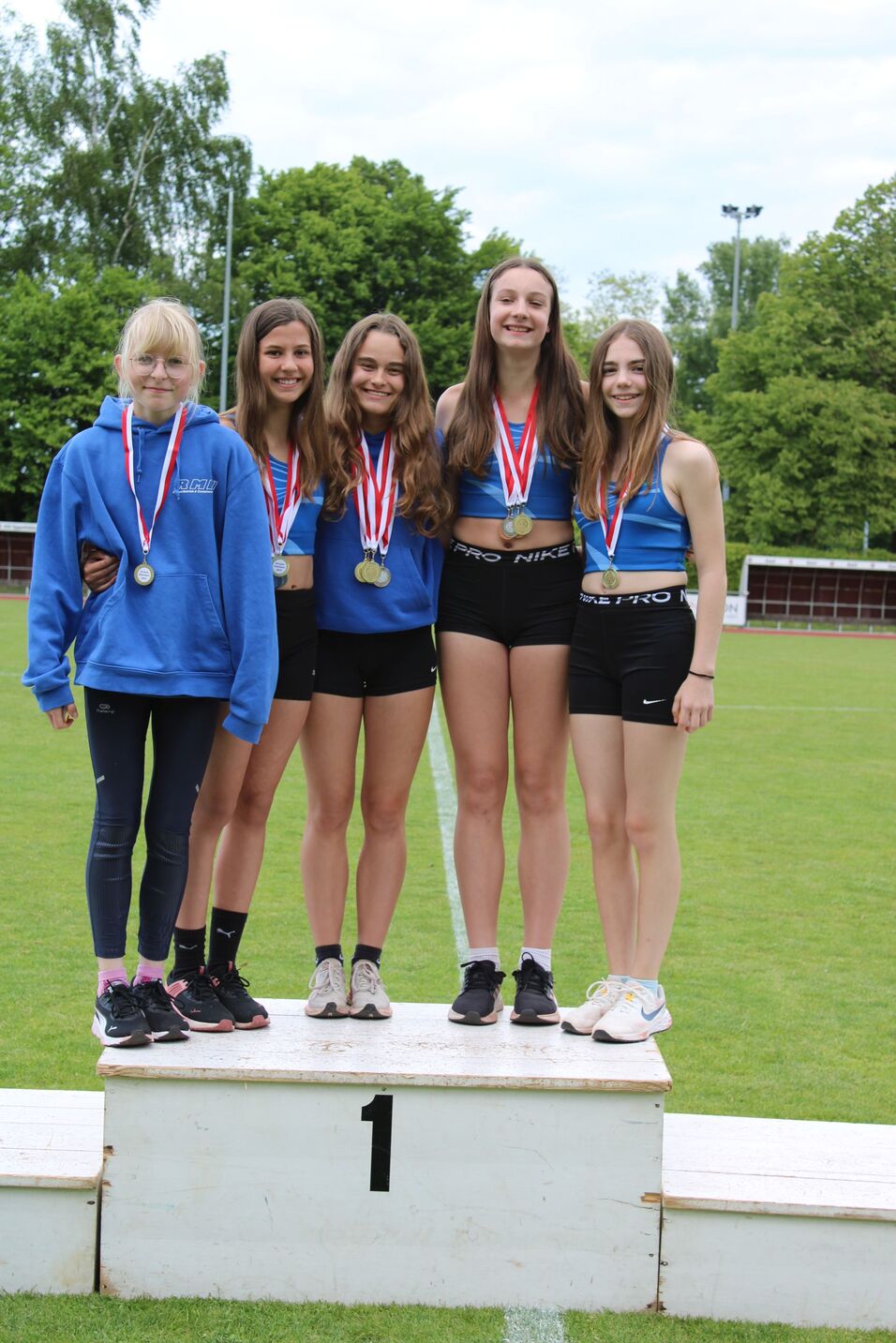 Bei den U16/w14 startete Lisa-Marie Stanglmair im Block Sprint/Sprung, bei den U14/w13 starteten Hannah Wittmann, Theresa Bachmaier und Julia Habel. Hannah im Block Sprint/Sprung, Theresa und Julia zur Abwechslung einmal im Block Lauf. Lisa, Hannah und Theresa holten in ihrem Block jeweils Silber, Julia erreichte den (undankbaren) 4.Platz in ihrem Block. Die Freude über die Silbermedaillen war groß, die Enttäuschung allerdings auch, denn der Abstand zu Gold war extrem gering: Bei Lisa betrug dieser 23 Punkte, bei Hannah 20 Punkte und bei Theresa sogar nur 5 Punkte – und das bei eine Gesamtpunktzahl um 2300!