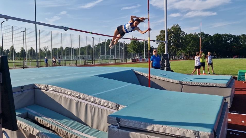 Trudering, 18 Juli 2024: Lisa-Marie Stanglmair nahm beim Stabhochsprungsportfest zur Einweihung der neuen Anlage in Trudering teil.